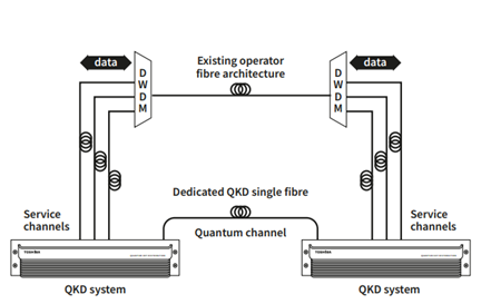 A Toshiba Flexible QKD System (LE) olyan QKD megoldás, amelyet úgy terveztek, hogy könnyen integrálható legyen a meglévő optikai hálózatokba, akár már üzemelő adatforgalmat vivő szálakon keresztül is. A rendszer lehetővé teszi, hogy a kvantumkulcs‑elosztást egy dedikált optikai szálon valósítsuk meg, miközben a kapcsolódó szolgáltatási (service) csatornákat a már működő hálózatba multiplexálhatjuk például WDM esetén együtt a klasszikus adatforgalommal. Ez növeli a telepítés rugalmasságát és optimalizálja a költségeket, hiszen nem feltétlenül kell új, külön QKD infrastruktúrát kiépíteni.